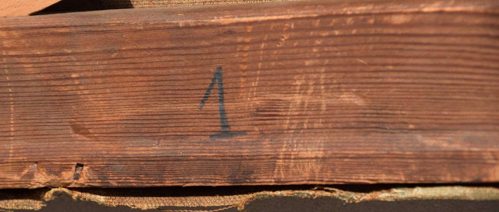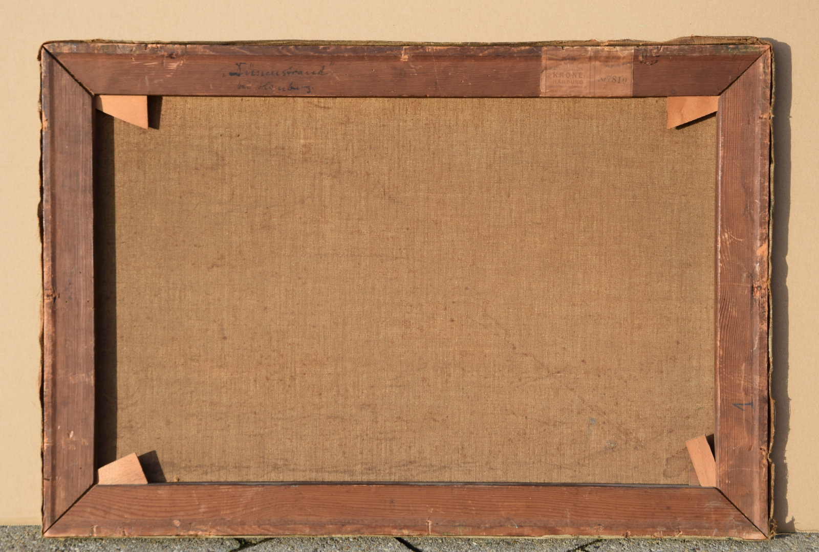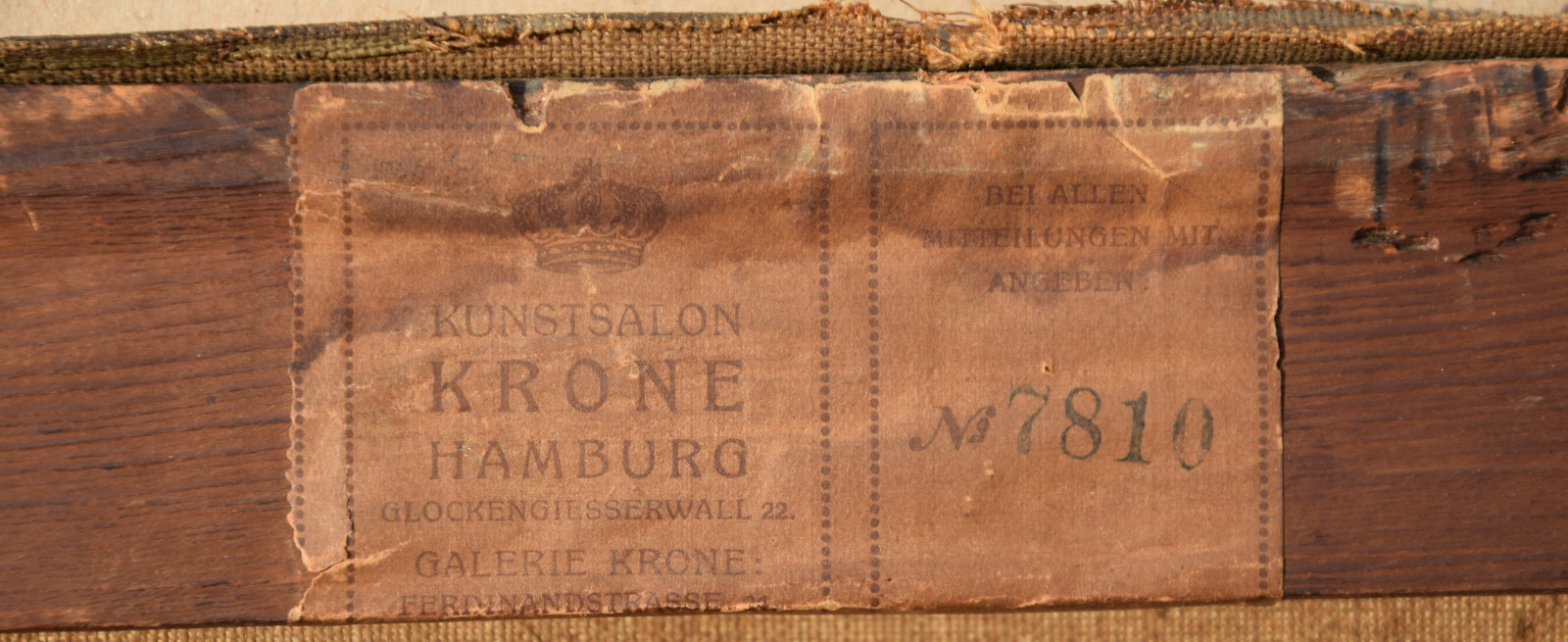 verso am Keilrahmen oben rechts Etikett „Kunstsalon Krone Hamburg / Glockengiesserwall 22 […]“