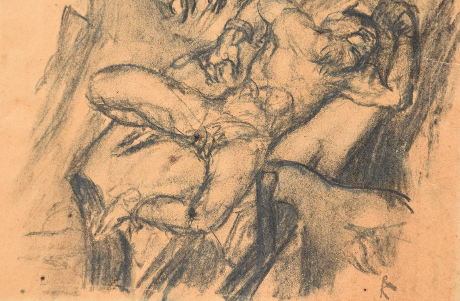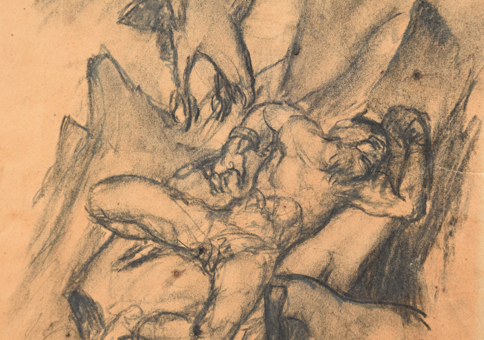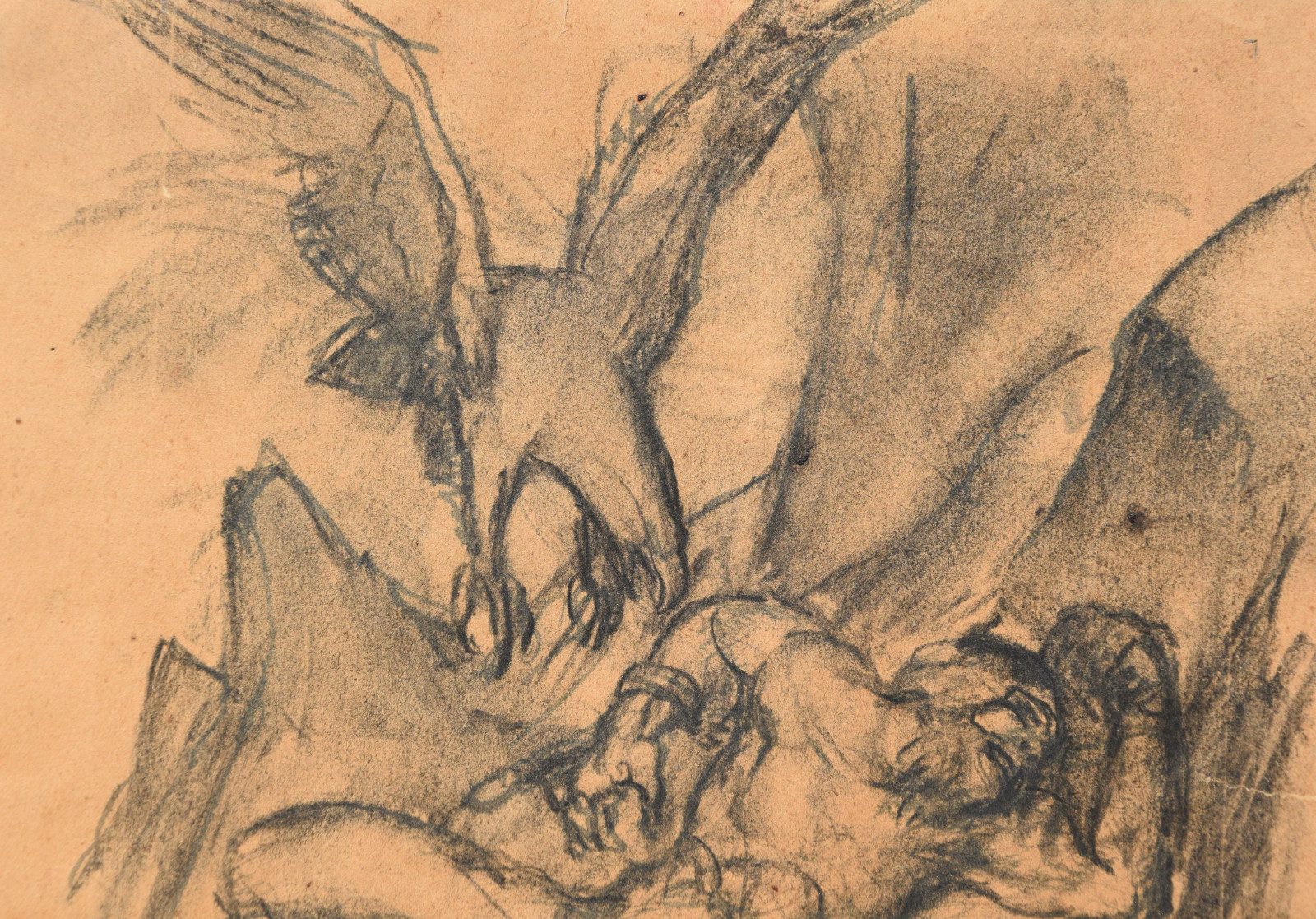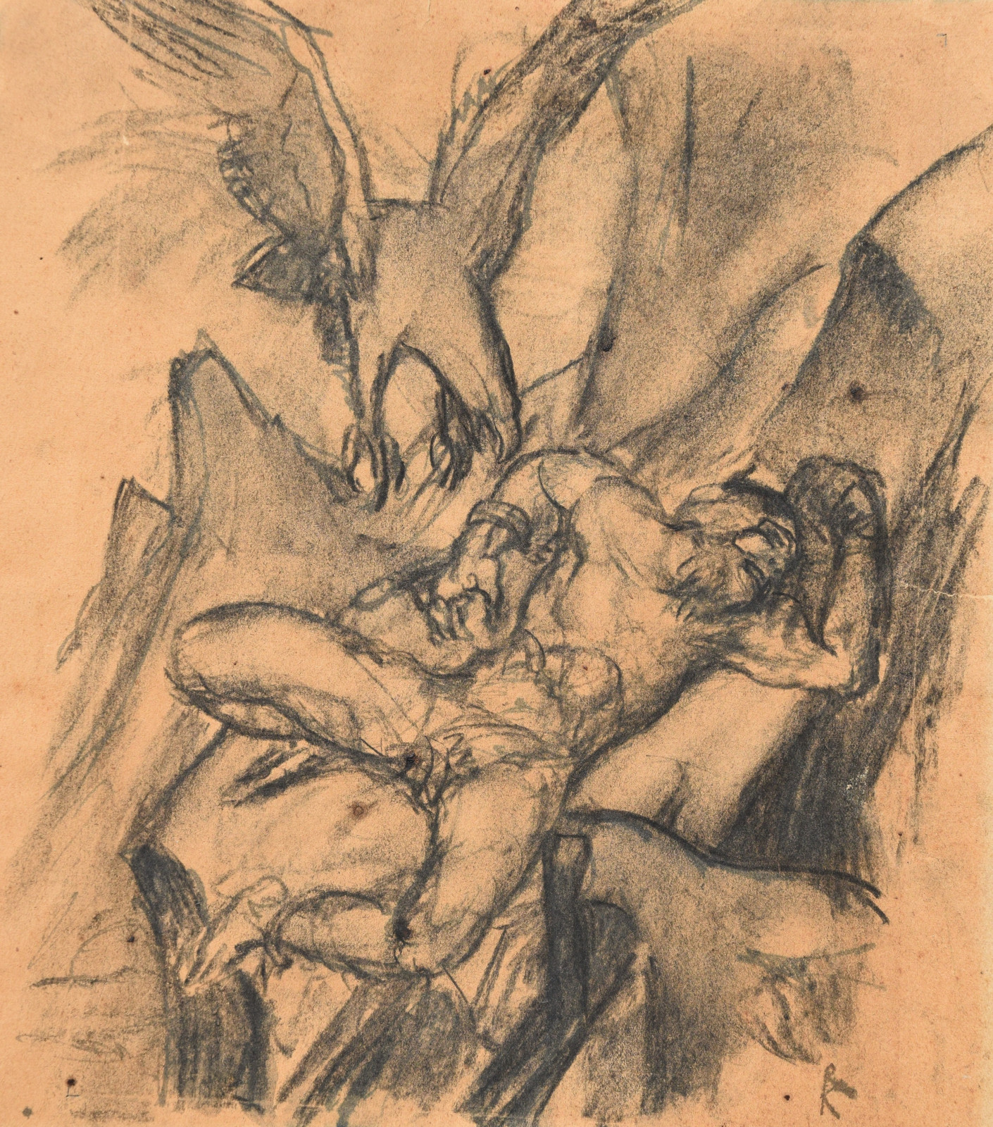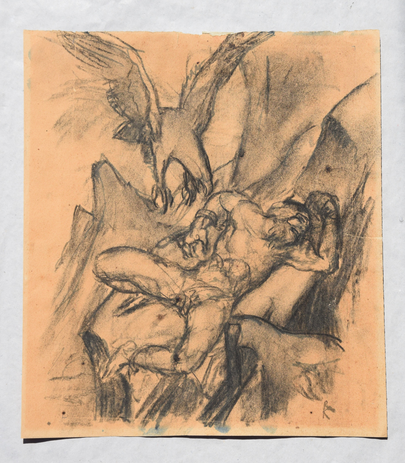 expressive Darstellung des an einen Felsen gefesselten Prometheus mit dem Adler (wohl um 1920-30)