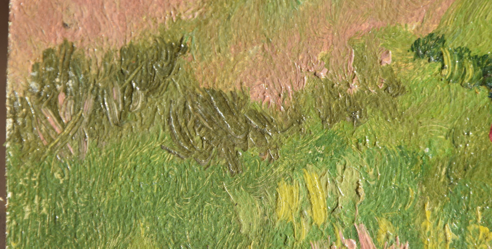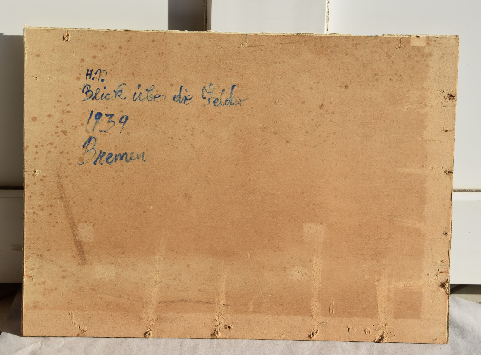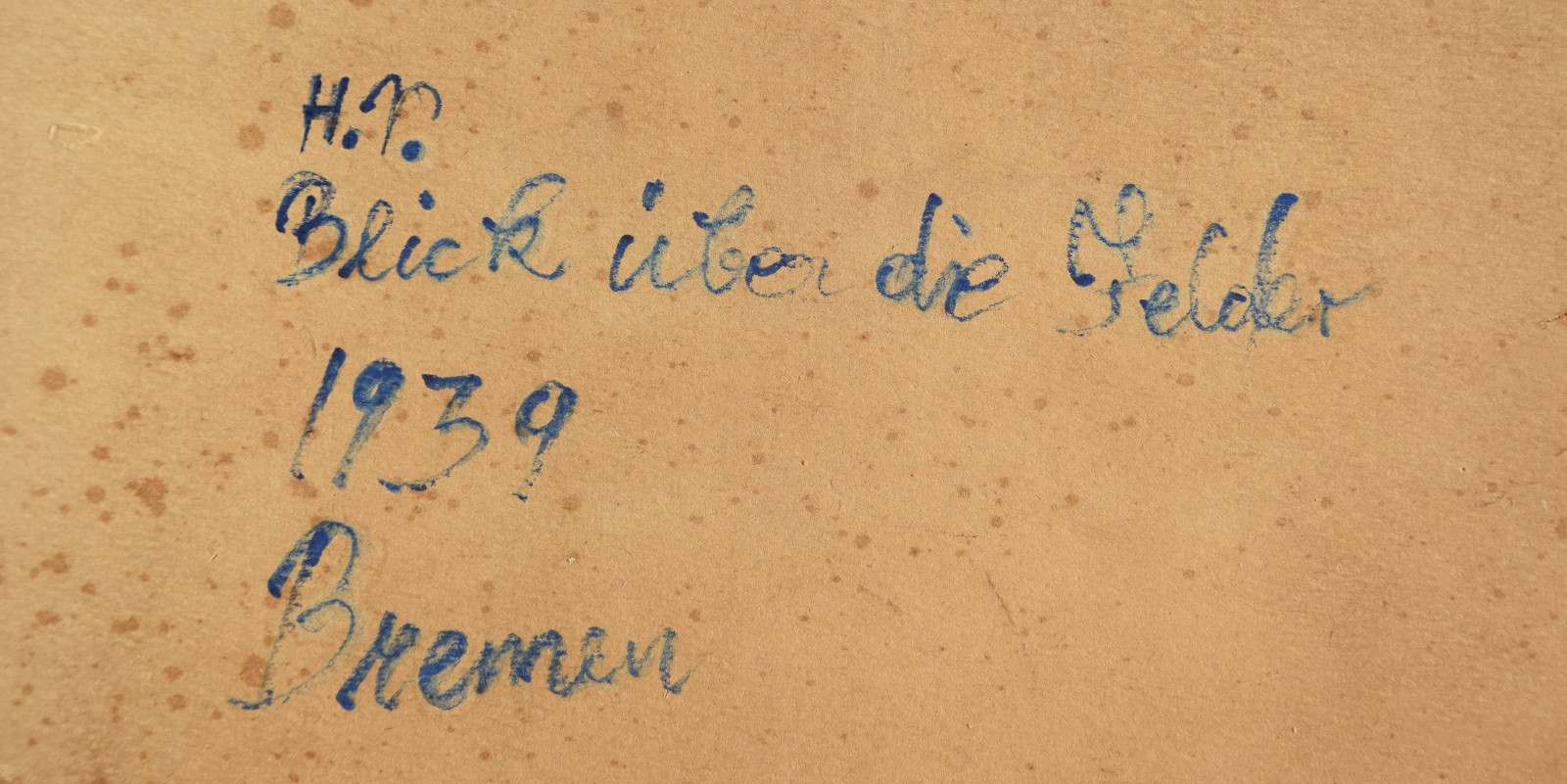 unsigniert, verso auf früherer Rahmenrückwand (von fremder Hand?) monogrammiert „H.V.“ und bezeichnet „Bremen“, dies soll unter Umständen auf Heinrich Vogeler verweisen, was jedoch in jedem Fall eine irrige Zuordnung ist
