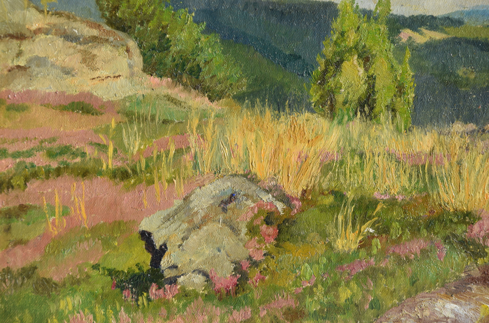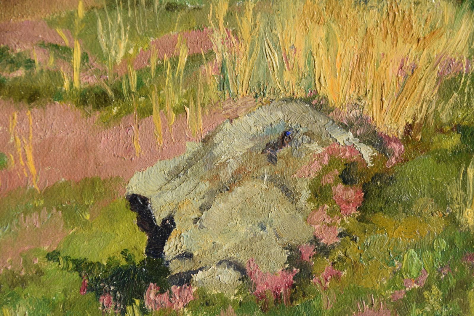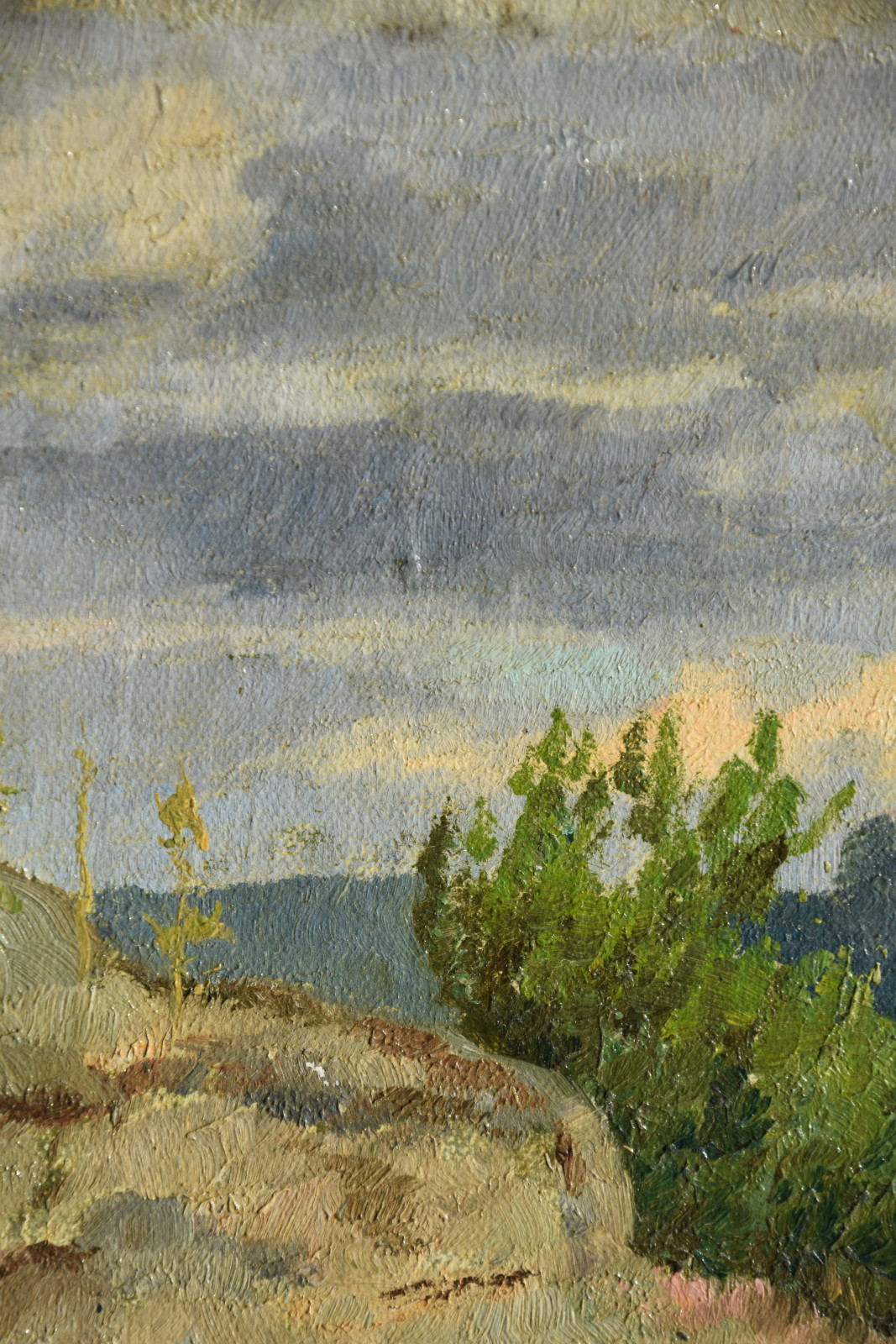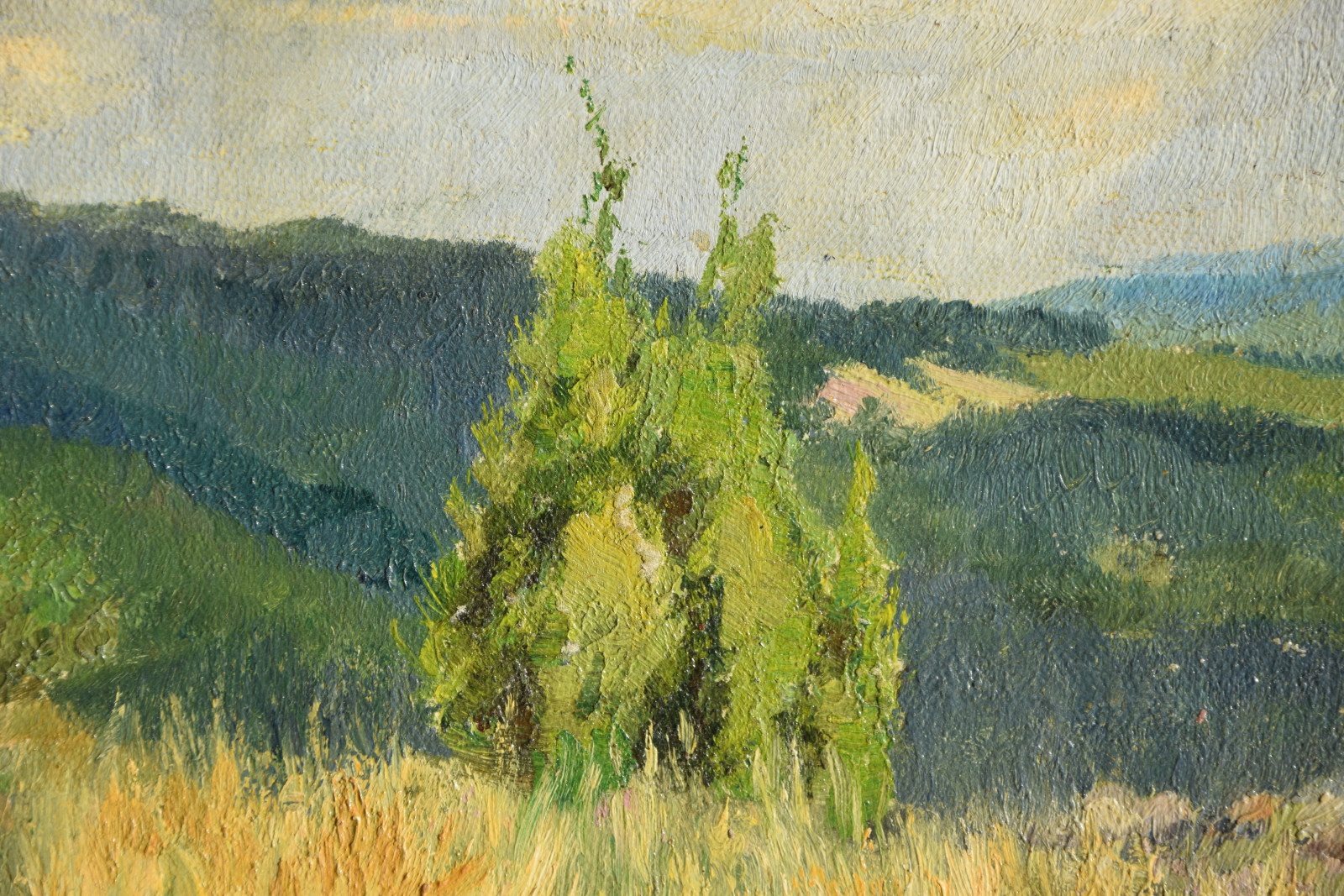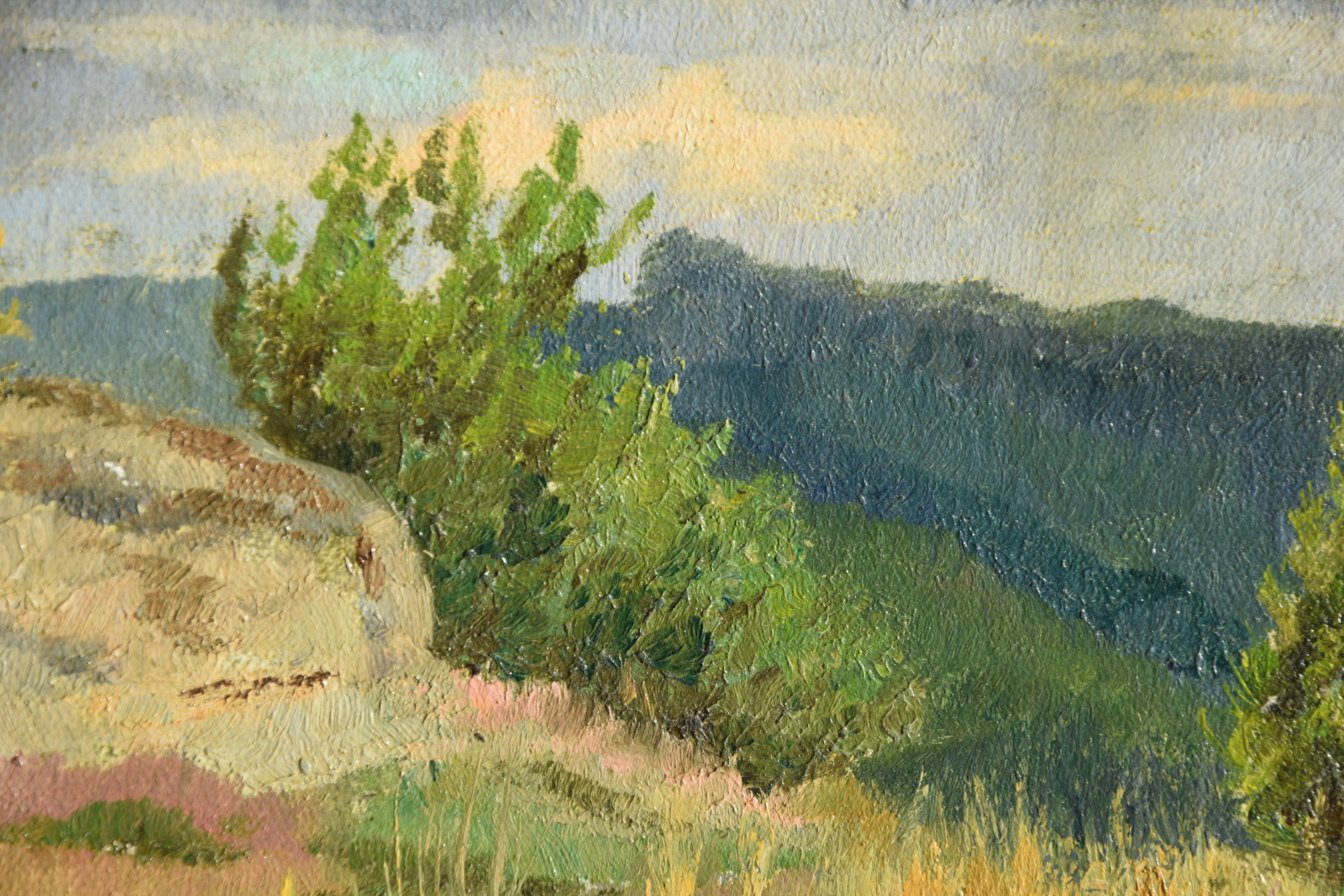 ohne Titel [weite Heidelandschaft, wohl in der Eifel, auf früherer Rahmenrückwand (von fremder Hand?) betitelt „Blick über die Felder“]